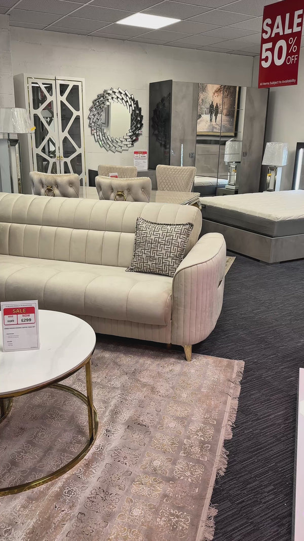 Atlas 3 Seater Sofa Bed with Pull-Out Mattress – Beige Fabric Sleeper Sofa